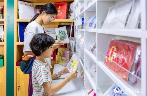 6月18日,來自福建的游客在呼和浩特市玉泉區(qū)塞上老街旅游休閑街區(qū)“塞上主題郵局”選購明信片。