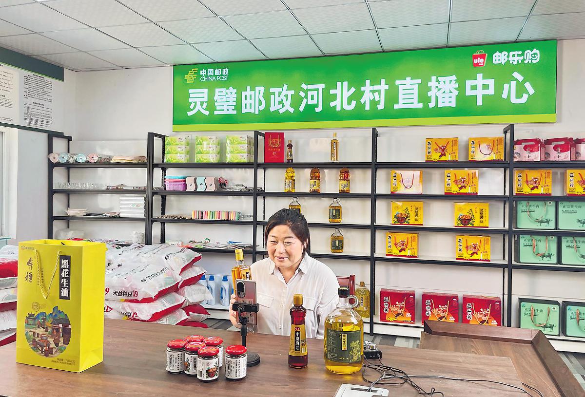 張亳玲在郵政直播間為本村特色農產品直播帶貨?! 踉S浩然 攝