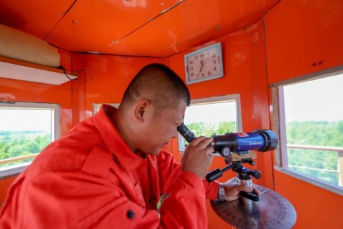 從室內(nèi)和室外平臺的望遠鏡眺望