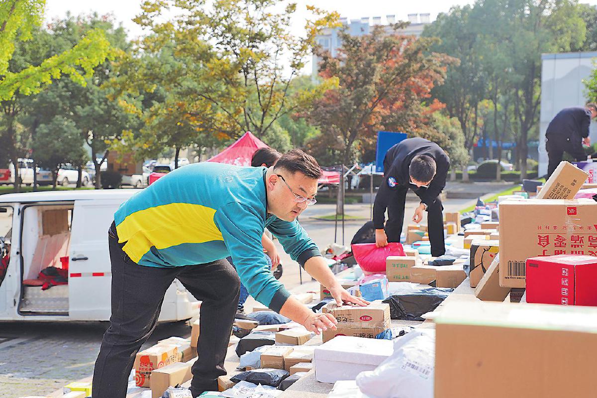 周江在整理即將投遞的郵件?! ?/p>