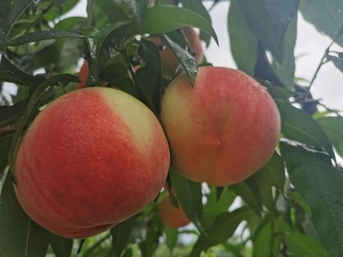 沉甸甸的燕紅桃掛滿枝頭(丹東市分公司提供)