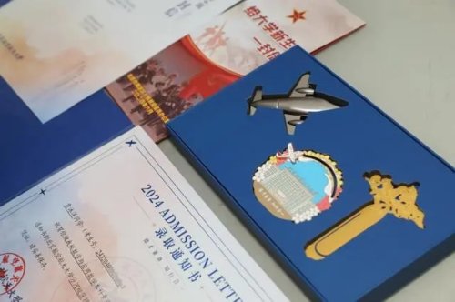 啟封北航2024年本科生錄取通知書,首先映入眼簾的是封套的北航藍(lán),封面上燙金的背影則代表著所有北航新生即將開啟人生的金色新篇,實現(xiàn)手可摘星辰的夢想。翻開內(nèi)封,校訓(xùn)“德才兼?zhèn)洌泻弦弧笔撬徒o新北航人的第一句囑托。