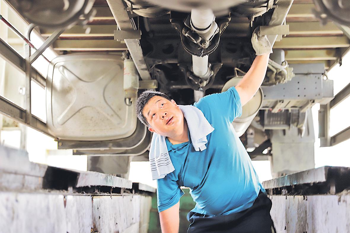 張旻歸班后檢修車(chē)輛?!踔芮濉z