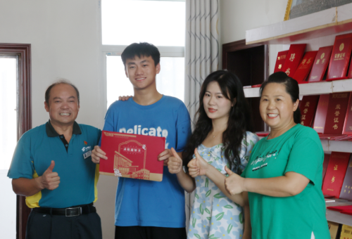 “熊文康!快來看看,我手上拿的是什么?”走進門,熊桂林抑制不住欣喜之情,揚起手中那份紅彤彤的錄取通知書,迫不及待地和家人分享這個好消息??吹绞歉赣H送來了通知書,熊文康非常意外,趕緊迎了上來。經(jīng)過嚴格查驗有效證件、規(guī)范簽收后,熊桂林親手將錄取通知書鄭重地遞交到兒子的手中。與此同時,江夏區(qū)郵政分公司為熊桂林一家送上了祝福鮮花和“送喜專家”舉家歡慶大禮包。