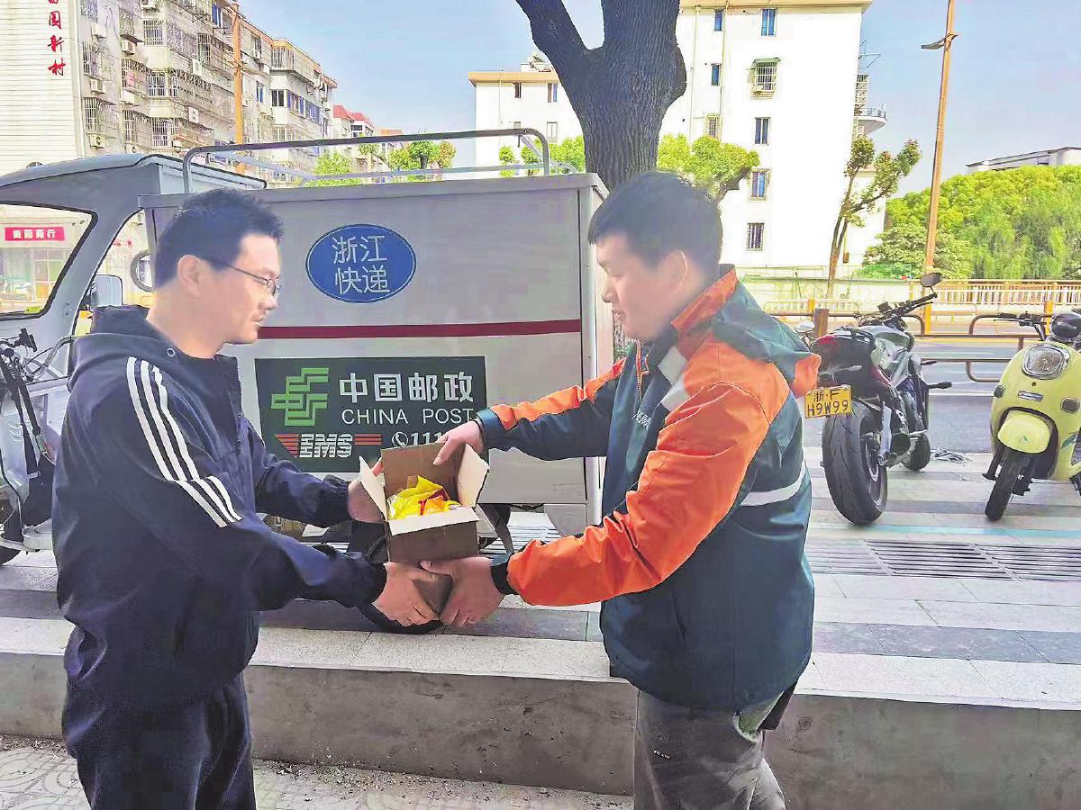 嘉興市分公司員工在約定時(shí)間上門收取客戶退件?!踔茜z
