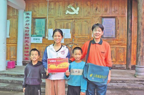 余仙花帶著她暑假免費(fèi)幫助補(bǔ)習(xí)功課的小學(xué)生,感謝郵遞員送來錄取通知書。