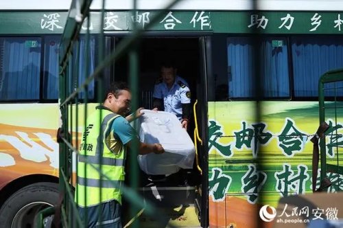 每天上午9時(shí)許,位于譙城區(qū)的中國郵政亳州郵件處理中心內(nèi),不少公交車會(huì)陸續(xù)開進(jìn)來。這些車身有著“交郵融合”字樣的公交車,就是郵政快遞下鄉(xiāng)的新“郵車”。