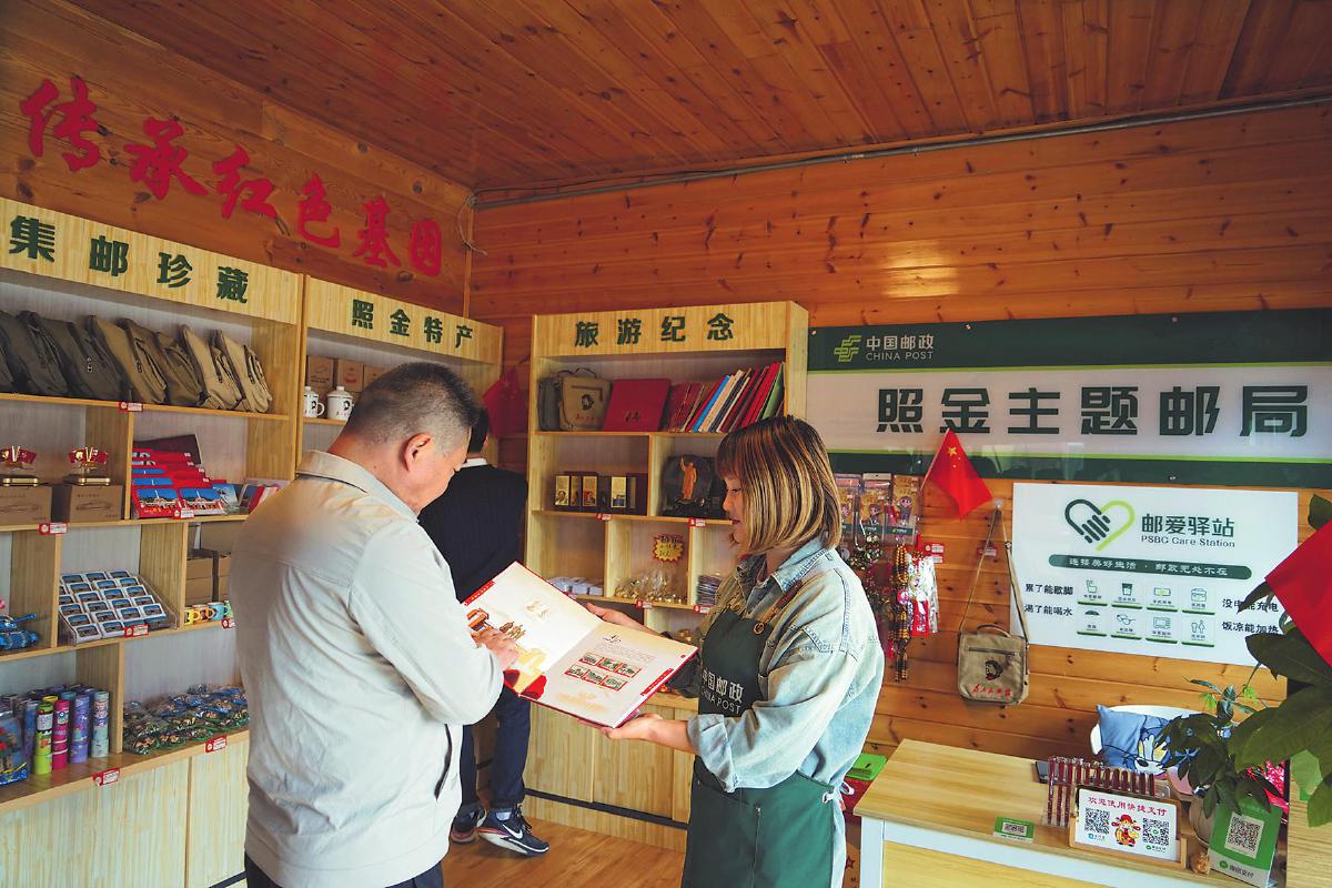 今年國慶長假期間,位于陜西省銅川市的紅色照金主題郵局開展了“慶祝新中國成立75周年”集郵文化產品展銷活動,受到廣大游客和集郵愛好者稱贊。10月1日當天,郵迷張先生來到主題郵局,連連稱贊道:“在舉國歡慶新中國成立75周年之際,在主題郵局購買這些紅色主題郵品,頗具紀念意義!祝愿我們偉大的祖國越來越好,越來越強!”從河南專程來到陜甘邊革命根據(jù)地旅游的孫先生給孩子購買了幾枚明信片。他深有感觸地說:“主題郵局里的這些文創(chuàng)產品,可以幫助孩子們更好地了解中國革命史,很有教育意義!”