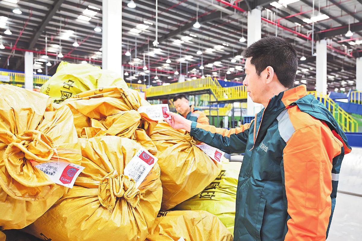在浙江,義烏國際郵件互換局為當(dāng)?shù)乜缇畴娚贪l(fā)展增添動能。 □厲楠 攝