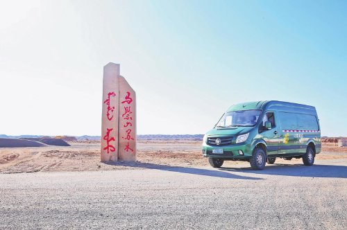 2020年7月,“額濟納旗—黑鷹山”邊防郵路正式開通,最遠的投遞點往返路程有778公里,道路坎坷難行,最怕的是遭遇沙塵暴或冬夏季車輛在無信號地帶出現(xiàn)故障?!颁佁焐w地的黃沙襲來,車都能掉一層漆,我們在與黃沙賽跑?!惫巩吜Ω竦ǖ卣f,“在無信號區(qū),如果車輛出現(xiàn)故障,根本沒有來往車輛,必須跑到有信號的地方或者深入沙漠找尋牧民求助。”