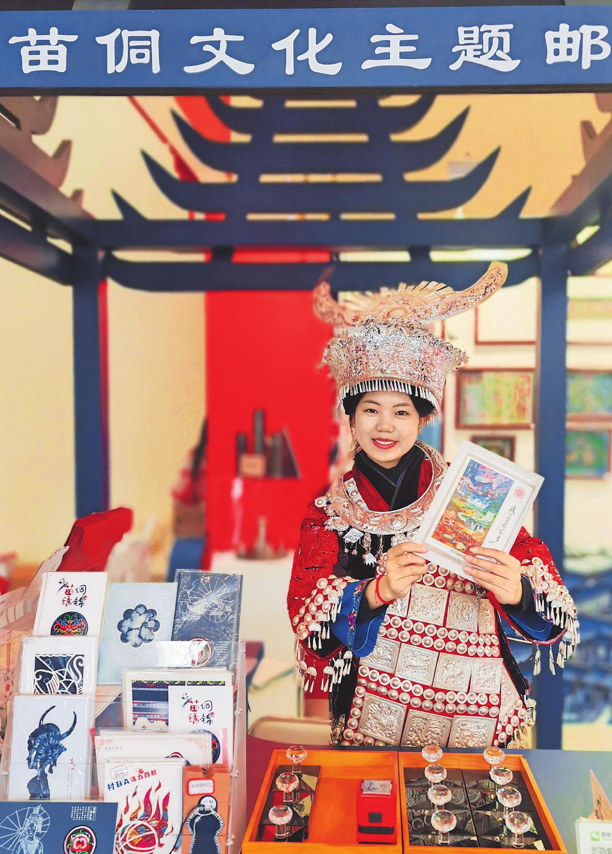 貴州郵政展臺(tái)極具少數(shù)民族特色,成為觀眾的熱門打卡地。