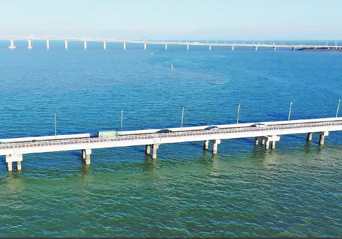 郵車行駛在港珠澳大橋上。 □張慧 攝