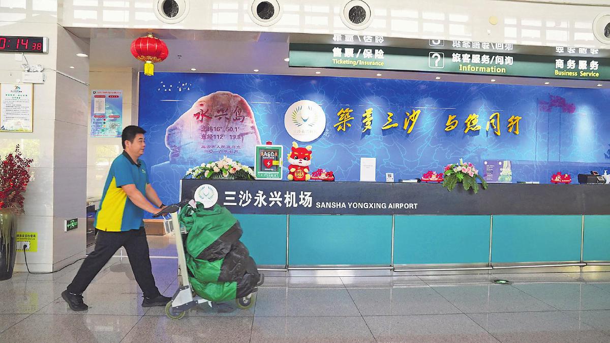 2024年12月27日8時(shí)32分,隨著海南三沙公務(wù)包機(jī)HU7071航班的順利起飛,其搭載的EMS特快郵件被送往三沙永興機(jī)場(chǎng)。40分鐘后,飛機(jī)平穩(wěn)降落。隨后,三沙郵政駐永興島工作人員在10時(shí)10分提取郵件,并立即進(jìn)行分揀和投遞。三沙航空郵路在延續(xù)原有報(bào)刊運(yùn)送服務(wù)的基礎(chǔ)上,新增EMS特快專遞郵件運(yùn)送,為駐永興島黨政部門和軍民提供了更加多樣化和便捷化的郵政服務(wù)。2025年,三沙郵政將進(jìn)一步提升服務(wù)水平,為建設(shè)美麗三沙貢獻(xiàn)更大力量。圖為三沙郵政駐永興島工作人員在永興機(jī)場(chǎng)提取郵件?!?/p>