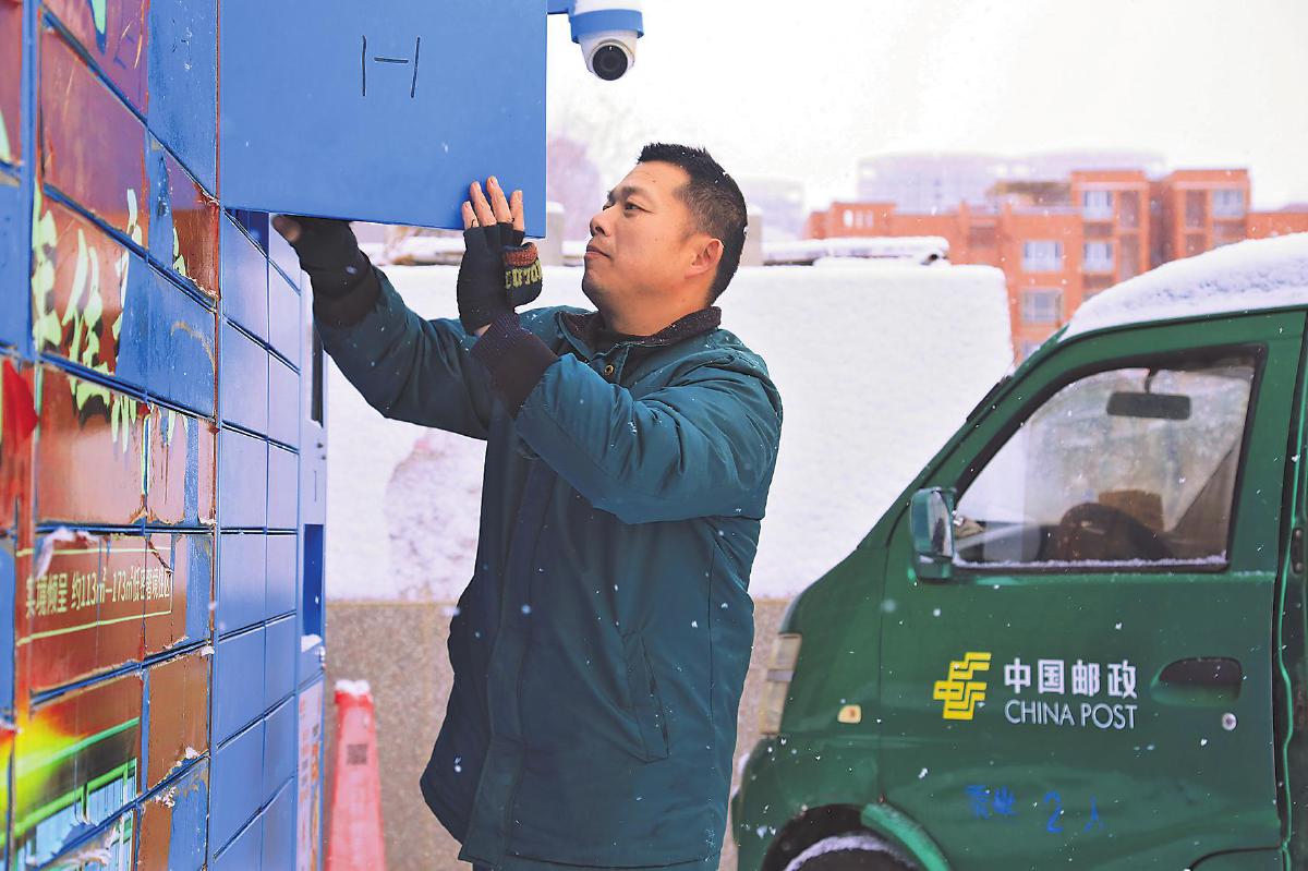 面對入冬后的第一場大雪,新疆維吾爾自治區(qū)巴音郭楞蒙古自治州郵政分公司攬投員王友峰堅守在郵路上,每天的配送量都在130件左右。他說:“為了確保人身、車輛安全,公司提前對車輛進行了全面檢修,更換雪地胎、配置防滑鏈,還為我們準備了棉衣、棉褲、手套等保暖裝備?!薄趵铥惣t 攝影報道