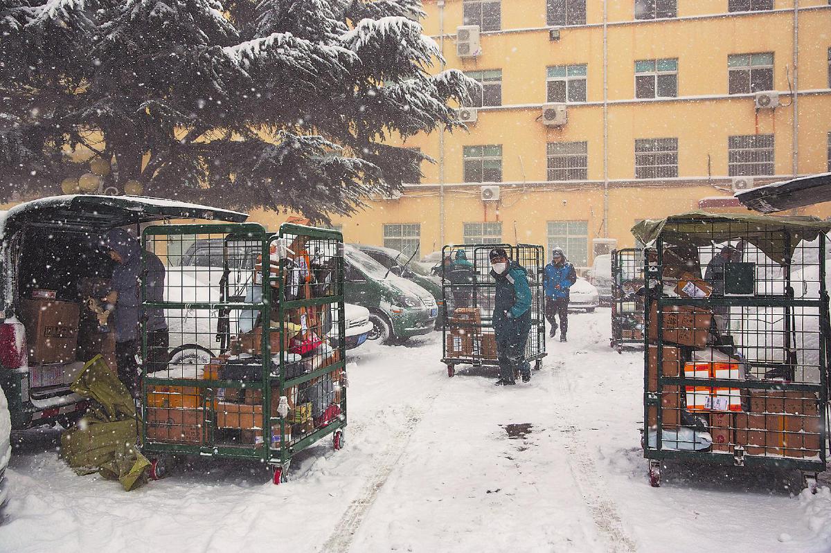 近期,寧夏回族自治區(qū)固原市普降大雪,郵政人頂風冒雪卸車、搬運郵件,保障所有郵件及時送達客戶手中?!蹶慄h?!z影報道