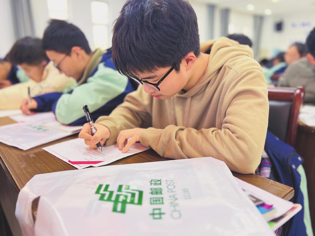 近日,浙江省桐鄉(xiāng)市郵政分公司與桐鄉(xiāng)市第六中學(xué)攜手開展“一封家書,萬縷親情”活動。學(xué)生們將平日里未曾言說的心里話,化作一行行飽含深情的文字,匯聚到88封滿載著愛與思念的家書中。桐鄉(xiāng)市分公司將邀請學(xué)生家長前往郵政網(wǎng)點,把這些親情家書和網(wǎng)點準(zhǔn)備的特色權(quán)益包一并送出。在活動現(xiàn)場,桐鄉(xiāng)市分公司還講解了中國郵政的發(fā)展歷史,并對郵政業(yè)務(wù)進行了推介,讓學(xué)生對郵政有了更多的了解。