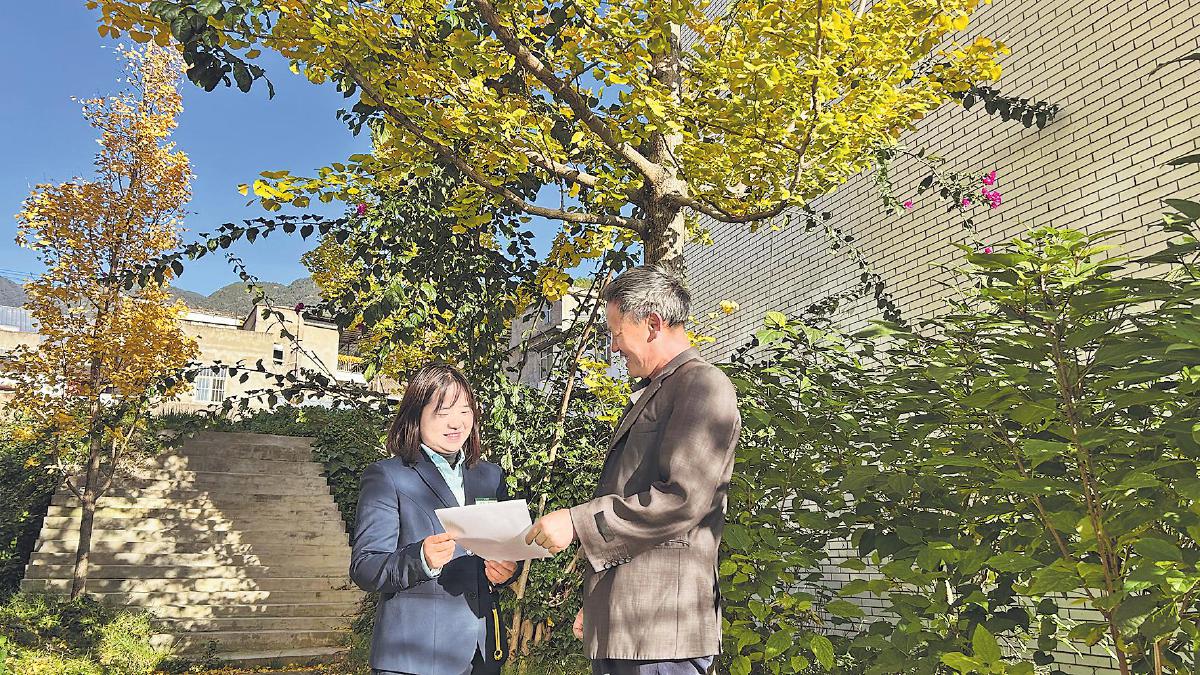 種樹者必培其根,修德者必養(yǎng)其心。在麻隴鄉(xiāng),大部分年輕人外出務(wù)工,只有老人留守在家。面對(duì)這些老人,李英不只把他們當(dāng)作客戶,更是成為他們的“知心人”?!拔椰F(xiàn)在也是麻隴鄉(xiāng)的一員?!崩钣⒄f(shuō)。在麻隴鄉(xiāng)的兩年里,李英將工作融入當(dāng)?shù)卮迕竦纳睿熘考颐繎舻幕厩闆r,家長(zhǎng)里短也都能聊得上話,大家有需要都最先想到她。除此之外,李英還是老人們了解新鮮事物的窗口,不僅為他們帶去外界的新消息,還常常組織院壩會(huì),用通俗易懂的語(yǔ)言為老人講解金融知識(shí)、反詐知識(shí)?!靶±钍俏覀兊暮绵従?,大家都信得過(guò)她哩?!笨蛻籼婆繉?duì)李英的服務(wù)很認(rèn)可,把資金都存在了麻隴營(yíng)業(yè)所。從“身入”到“心入”,李英扎根鄉(xiāng)村煙火,以真誠(chéng)的服務(wù)回應(yīng)著村民的真切期盼。