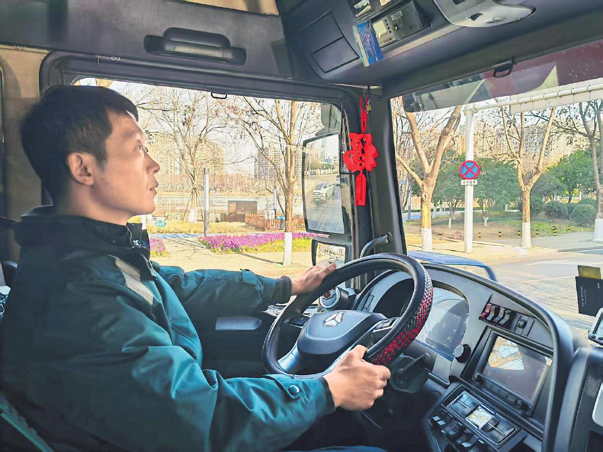 在忙碌中,陳文海會不時掃視一眼掛在駕駛室左側(cè)的“平安?!?,這是家人送給他的。“平安?!睅砹四晡?,也寄托著他70多歲的父母、勤勞持家的妻子、就讀高三的女兒的牽掛,提醒著他注意安全和保重身體。