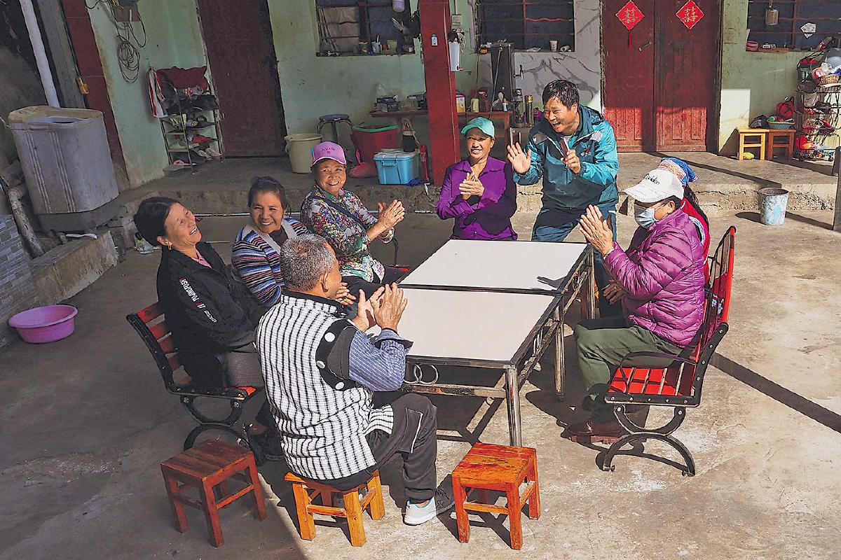 工作之余,桑南才將村民聚在一起,為他們繪聲繪色地講解黨的政策和郵政助農(nóng)惠農(nóng)的措施?! 酢豆と巳請?bào)》記者 吳凡 攝