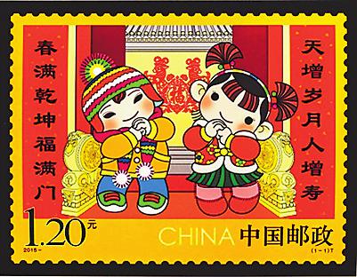 2015年1月10日,中國(guó)郵政發(fā)行了第一枚《拜年》特種郵票。