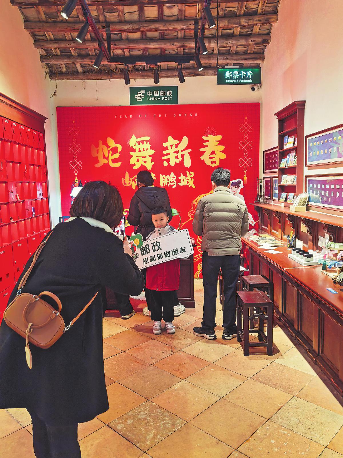 充滿年味的時光郵亭成為游客打卡留念的熱門地點?!趵顐| 攝
