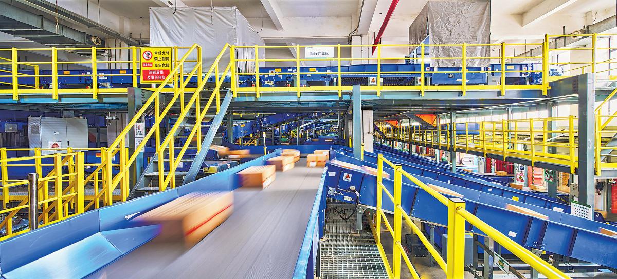 在廣州郵區(qū)中心機(jī)場(chǎng)北處理中心,郵件在傳送帶上快速流轉(zhuǎn),經(jīng)過智能分揀系統(tǒng)的精準(zhǔn)識(shí)別和快速分揀,高效完成內(nèi)部作業(yè)處理。□楊曉明 攝
