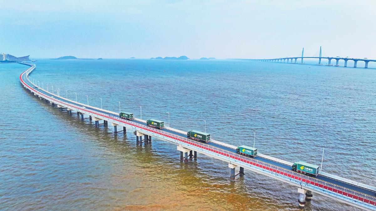 郵政車隊(duì)在港珠澳大橋的引橋上有序前行,宛如一條綠色的絲帶連接著粵港澳大灣區(qū)。郵政服務(wù)為區(qū)域內(nèi)的物流運(yùn)輸和經(jīng)濟(jì)交流提供了有力支持,促進(jìn)了大灣區(qū)物流一體化進(jìn)程,助力區(qū)域經(jīng)濟(jì)的繁榮和發(fā)展?! 蹶悗煛z