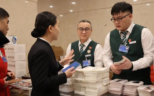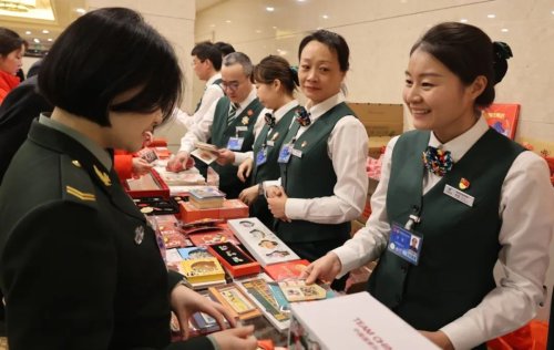 在駐地臨時(shí)郵局的柜臺(tái)前,代表委員和兩會(huì)工作人員或翻閱《郵政服務(wù)指南》了解郵票郵品設(shè)計(jì)內(nèi)涵,或用手機(jī)拍攝文創(chuàng)冰箱貼為親友挑選禮物,更有集郵愛好者仔細(xì)對比郵品的工藝細(xì)節(jié)?!霸趦蓵?huì)服務(wù)的前期,我做足了功課,學(xué)習(xí)了產(chǎn)品特點(diǎn)和服務(wù)要點(diǎn)。能參加這次全國兩會(huì)的服務(wù)感到非常榮幸,希望能圓滿地完成此次任務(wù)。”第一次參加全國兩會(huì)郵政服務(wù)的許勇介紹。