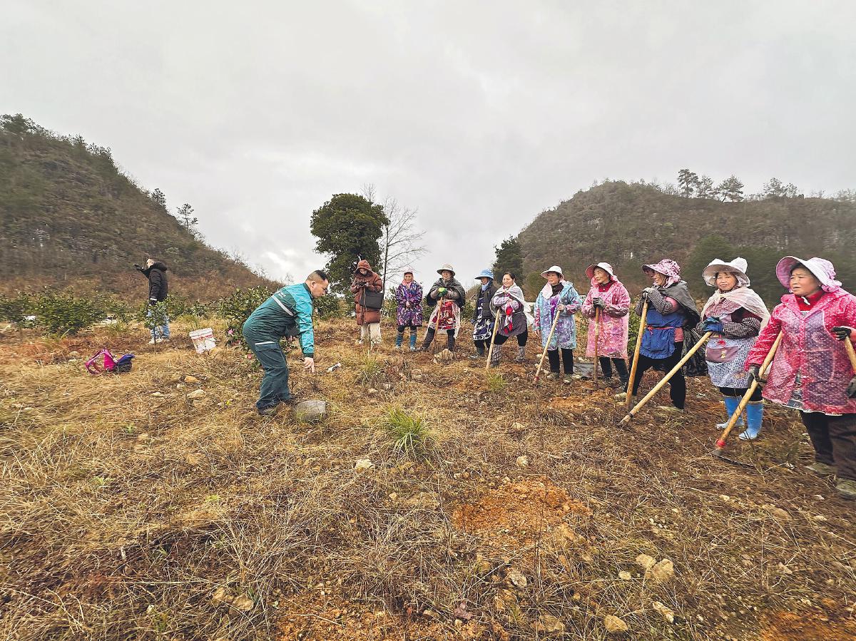 冒著綿綿的細(xì)雨,全國(guó)人大代表、貴州省黔南布依族苗族自治州龍里縣郵政分公司投遞員莫富元第一時(shí)間來(lái)到該縣平西村油茶基地,在田間地頭向村民宣講全國(guó)兩會(huì)精神,增強(qiáng)了大家對(duì)未來(lái)發(fā)展的信心?! 蹴n靜樺 何航 攝