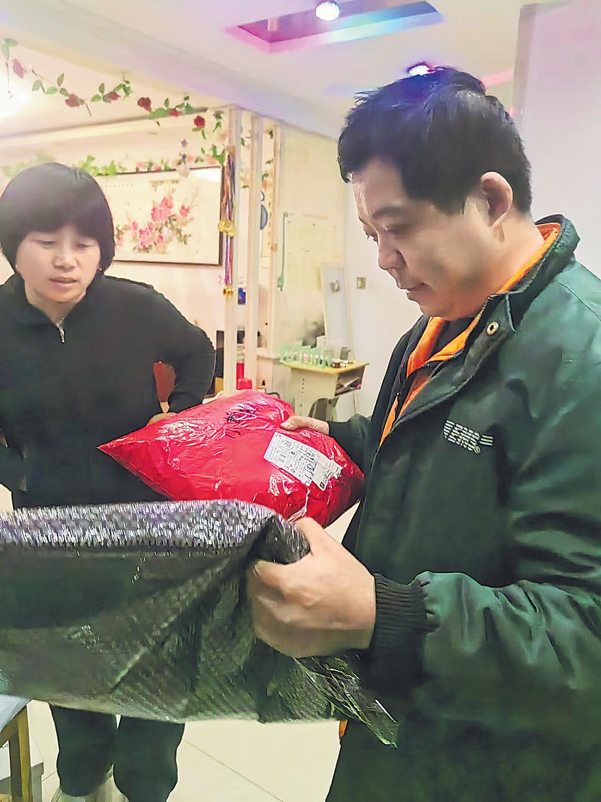 沿街的18家重點(diǎn)商戶更視他為“定海神針”。某文具店老板也回憶說,去年“雙11”,店里堆積如山的包裹讓自己幾乎崩潰。相靜雪得知后,主動延長工作時(shí)間,從晚8點(diǎn)忙到次日凌晨1點(diǎn),他和同事們幫著封裝、分發(fā),搬完500多件貨物,手臂被紙箱邊緣劃出血痕也渾然不覺。餐飲店老板娘張姐笑道:“老相的‘錯峰攬收法’比鬧鐘還準(zhǔn),上午收電商件,下午取外賣箱,晚上處理加急單。有他在,我們只管接單,從不怕物流掉鏈子!”