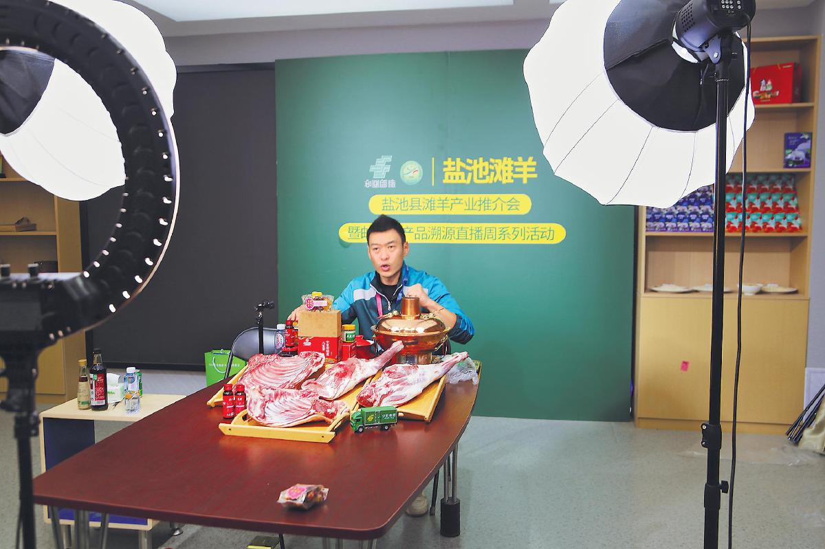 郵政直播間開啟溯源直播,推介鹽池灘羊。