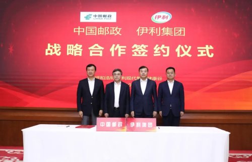 4月15日,中國(guó)郵政集團(tuán)有限公司與伊利集團(tuán)在內(nèi)蒙古呼和浩特簽署戰(zhàn)略合作協(xié)議。