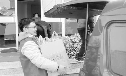 郵政工作人員正在卸運新鮮蔬菜。