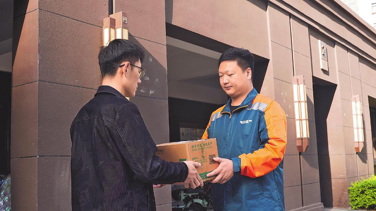 張永基將包裹及時(shí)送到客戶手中。