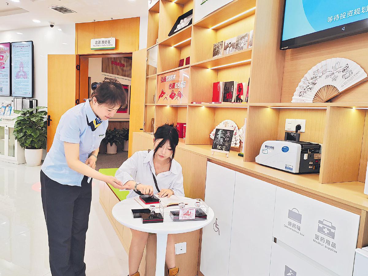 作為重慶分行特色化轉(zhuǎn)型的標桿網(wǎng)點,該支行與渝中區(qū)化龍橋街道深度合作,共建“紅金渝·化龍橋金融網(wǎng)格驛站”,將現(xiàn)有“郵愛驛站”升級為多功能綜合服務樞紐。一方面,為環(huán)衛(wèi)工人、快遞員等戶外勞動者提供飲水、充電等40項便民服務,打造溫暖的“歇腳地”;另一方面,集成金融政策宣導、金融知識普及、金融糾紛調(diào)解等功能,成為“紅金渝”金融黨建品牌在社區(qū)治理中的生動實踐。